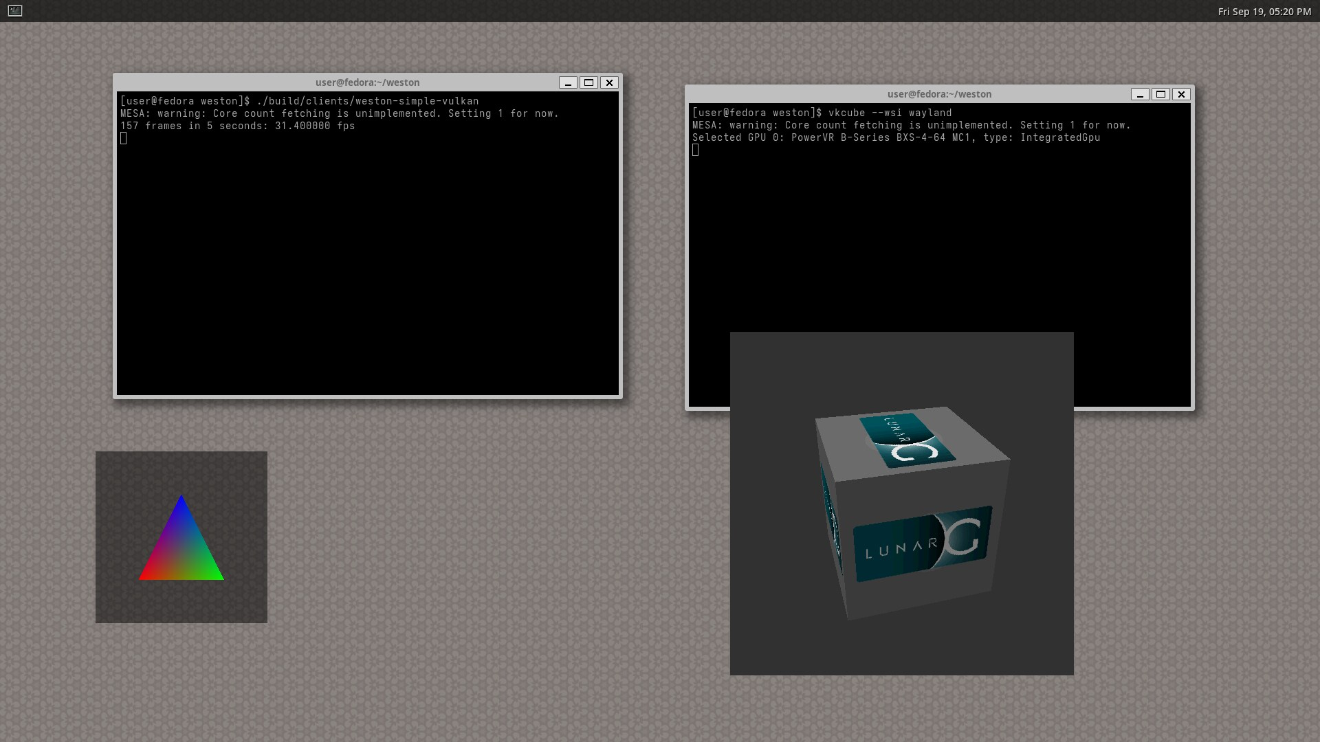 and these ones get to run as well with a similar patch to my very old one https://ernunes.fedorapeople.org/bxs2.png (and actually also one small fix to weston vulkan)